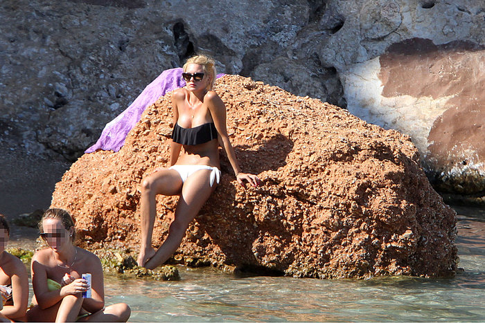 Ποιο ήταν αυτό; Πόζες, τεντώματα, νάζια, μάζεμα ήλιου πάνω σε έναν βράχο που βρισκόταν στην παραλία , η οποία να σημειωθεί ότι ήταν και γεμάτη κόσμο, όπως φαίνεται στις εικόνες. Α, και ξαφνικά βρέθηκε και με μαύρα γυαλιά!