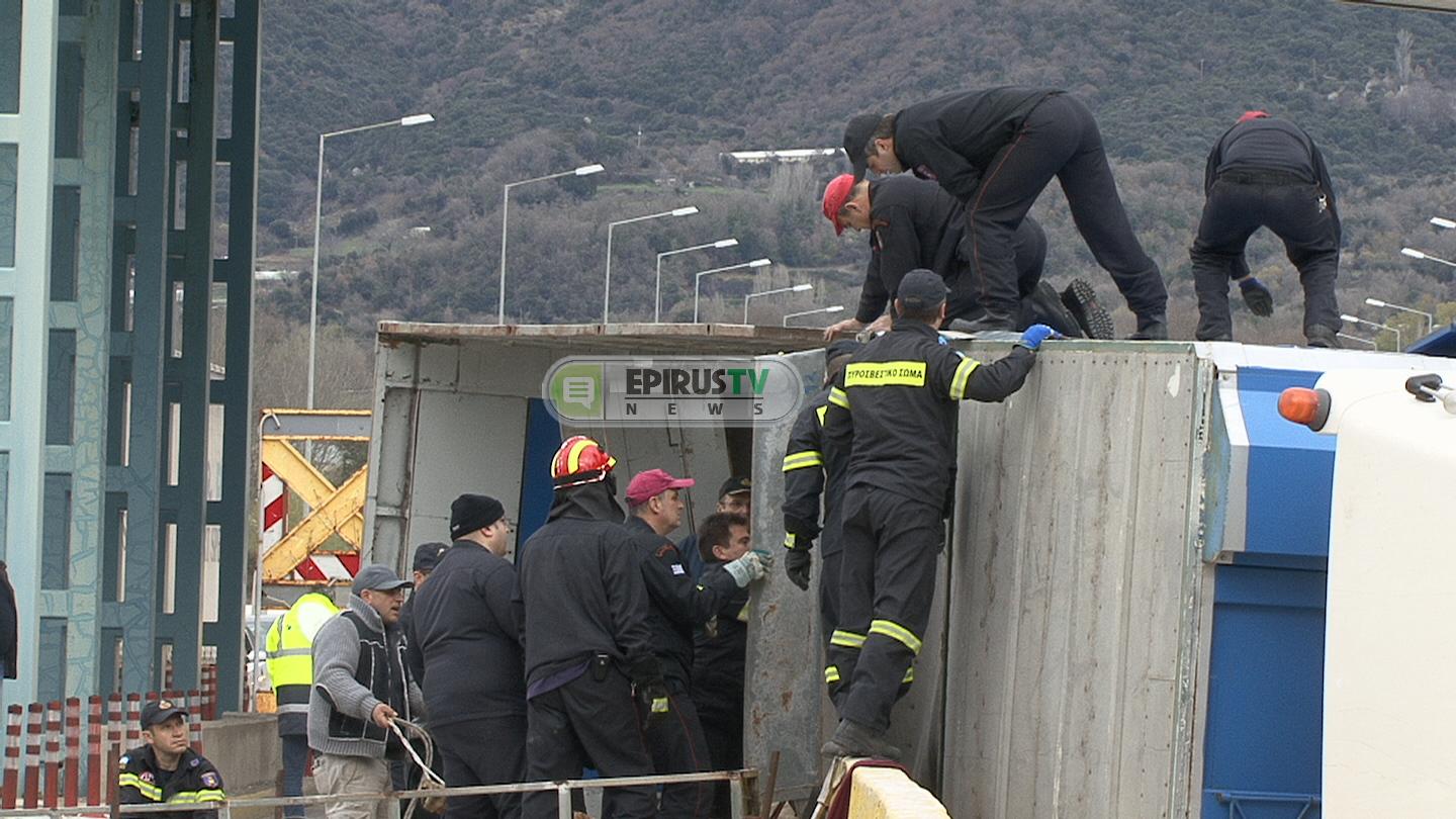 Οι πρώτες πληροφορίες κάνουν λόγο για μετατόπιση του φορτίου που φέρεται να προκάλεσε και το ντελαπάρισμα του οχήματος.