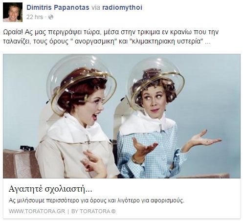 Η απάντηση του Δημήτρη Παπανώτα ήρθε αρχικά μέσα από το Happy Day και στη συνέχεια από τους Ραδιομύθους στο facebook, όπου την κατηγόρησε για ομοφοβία…