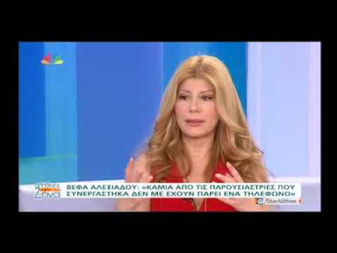 Περίμενα και από τις υπόλοιπες παρουσιάστριες μια κουβεντούλα γλυκιά. Το να με πάρει η Ελένη στο κανάλι, σε αυτό υπεύθυνος είναι ο καναλάρχης, δεν μπορεί να κάνει η Ελένη ό,τι θέλει. Αλλά το να με πάρει να μου πει με το τηλέφωνο μία καλημέρα ή «Τι κάνεις Βέφα; Είσαι καλά; Κλαις;». Έπρεπε να το κάνει.»