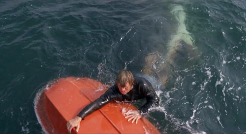 «Έχει μαύρα μάτια, νεκρά μάτια… σαν της κούκλας. Κι όταν σε πλησιάζει, δεν φαίνεται να ζει καν. Ώσπου να σε δαγκώσει. Και τότε τα μάτια του γυρνούν ανάποδα, γίνονται άσπρα… και τότε τον ακούς. Τον τρομερό, τσιριχτό ήχο…». Ο εμβληματικός μονόλογος του χαρακτήρα Κουίντ, τον οποίο υποδύθηκε ο Ρόμπερτ Σο στο φιλμ του 1975, περιγράφει έναν εφιάλτη που δεν ήταν καθόλου φανταστικός.