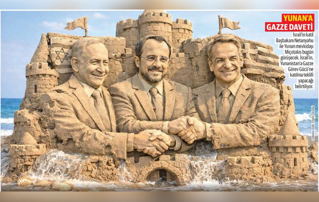 Στο ίδιο πνεύμα και η *Milliyet*, με ακόμη πιο δραματικό τίτλο: *«Ισραήλ, Ελλάδα και “Νότια Κύπρος” ενώνονται: Ένα στρατιωτικό σχέδιο κατά της Τουρκίας είναι στο τραπέζι»*. Το άρθρο παρουσιάζει τη συνεργασία των τριών κρατών ως άμεση απειλή για την Τουρκία, υιοθετώντας πολεμική ορολογία και κινδυνολογία.