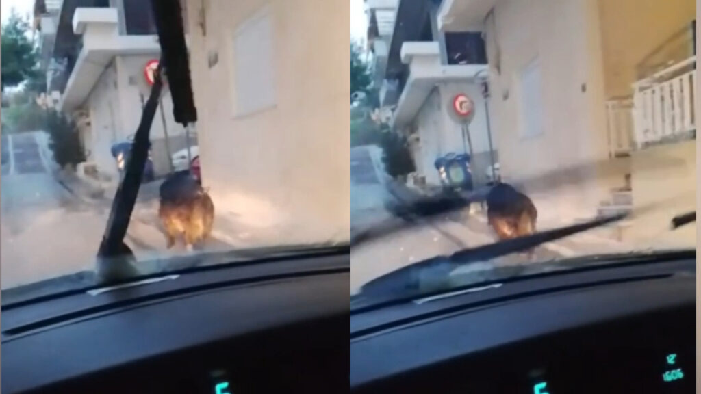 Όπως φαίνεται και στο βίντεο που ανέβασε μια οδηγός στο TikTok, το περιστατικό σημειώθηκε την Πέμπτη 27 Νοεμβρίου 2025. Το ζώο εντοπίστηκε την ώρα που η γυναίκα έβγαινε από την αυλή ενός σπιτιού και άρχισε να περπατά δίπλα της, σαν να ήταν κάτι απόλυτα φυσιολογικό.