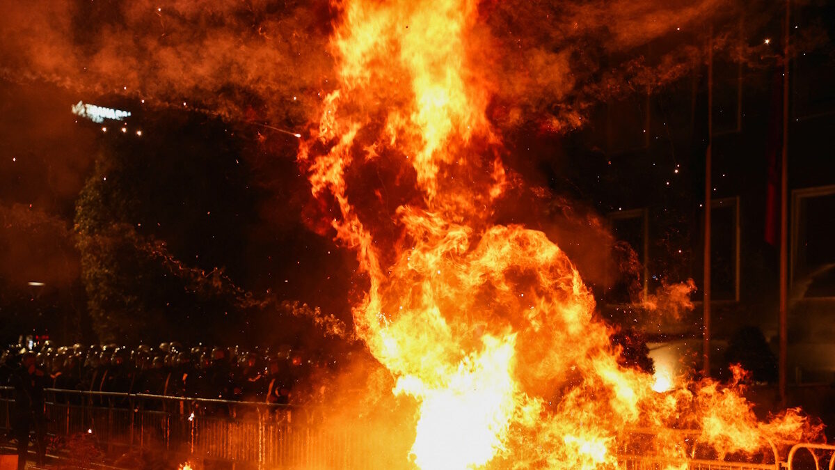 Σύμφωνα με τις πληροφορίες, ομάδες διαδηλωτών πέταξαν βόμβες μολότοφ προς κυβερνητικό κτίριο, ενώ οι δυνάμεις ασφαλείας απάντησαν με τη χρήση κανονιών νερού. Πρόκειται για το πιο πρόσφατο περιστατικό σε μια αλυσίδα βίαιων κινητοποιήσεων που απειλούν τη σταθερότητα της μακρόχρονης διακυβέρνησης του πρωθυπουργού Έντι Ράμα, η οποία ξεκίνησε το 2013.