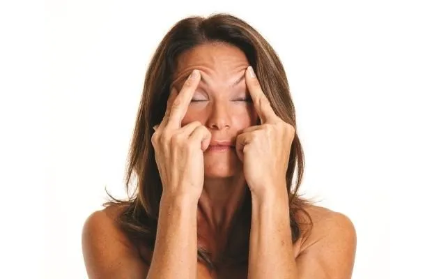 Τοποθετήστε τους δύο δείκτες ακριβώς κάτω από το εξωτερικό άκρο του φρυδιού και τα μεσαία δάχτυλα περίπου στο μέσο του κάθε φρυδιού.