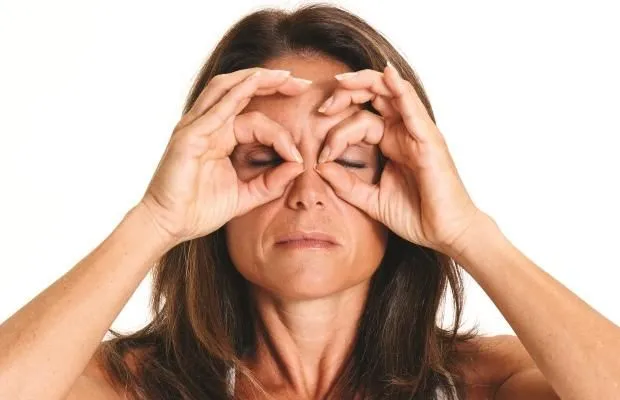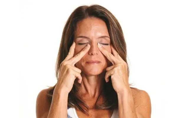Τοποθετήστε τους δύο δείκτες στο εξωτερικό άκρο του φρυδιού και τα μεσαία δάχτυλα ακριβώς κάτω από το εσωτερικό άκρο του ματιού.