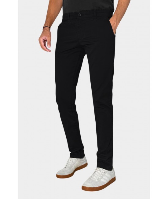Ιδανικά σε μαύρο χρώμα, ένα ανδρικό παντελόνι chinos σε ίσια γραμμή συνδυάζετε άψογα με ένα μονόχρωμο πουκάμισο σε navy blue, λευκή ή μπεζ απόχρωση για ένα κομψό outfit γραφείου.