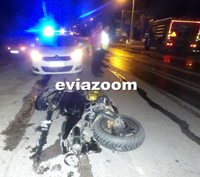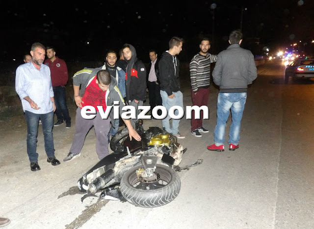 Με αίμα «βάφτηκε» η άσφαλτος τα μεσάνυχτα του Σαββάτου προς Κυριακή (13-11-2016) στο 1ο χλμ Εθνικής Οδού Χαλκίδας – Νέας Αρτάκης, έπειτα από σφοδρή σύγκρουση αυτοκινήτου με μηχανή που οδηγούσε ο 27χρονος Χαλκιδέος, Δημήτρης Βαρσαμάς, ο οποίος τραυματίστηκε σοβαρά και νοσηλεύεται σε κρίσιμη κατάσταση στη Μονάδα Εντατικής Θεραπείας του ΚΑΤ…