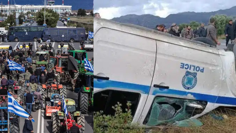 Χάμος με αγρότες και ΜΑΤ στα Χανιά – Αναποδογύρισαν περιπολικό