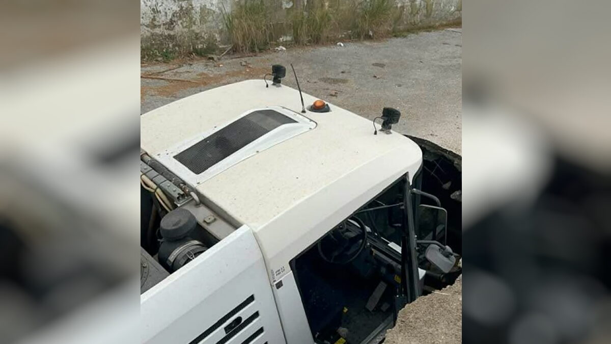 Σύμφωνα με όσα έγιναν γνωστά, ο δρόμος άνοιξε αιφνιδιαστικά, δημιουργώντας μια μεγάλη τρύπα στο οδόστρωμα, μέσα στην οποία κατέληξε το μηχάνημα καθαριότητας. Ευτυχώς, ο οδηγός πρόλαβε να βγει από το όχημα και δεν τραυματίστηκε.