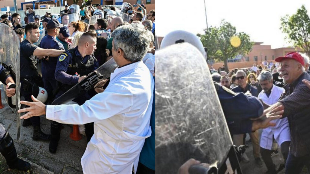 Σύμφωνα με όσα καταγγέλθηκαν, δεν έμειναν μόνο εκεί: εργαζόμενοι αναφέρουν ότι οι δυνάμεις καταστολής επιτέθηκαν και με γκλοπ, προκαλώντας μεγαλύτερη αναστάτωση.