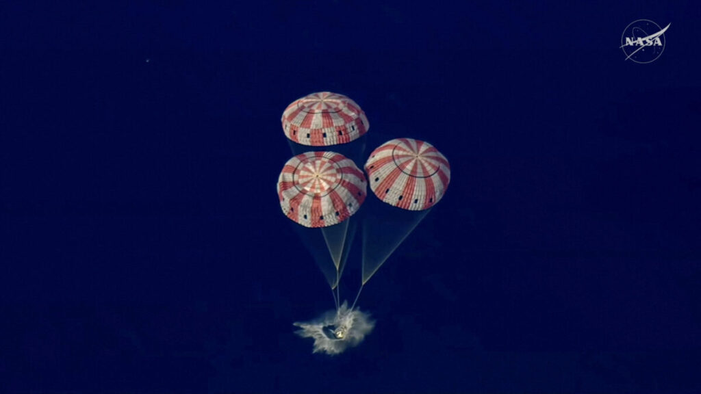 Παρά τον τεράστιο κίνδυνο, το πλήρωμα κατάφερε να προσθαλασσωθεί με επιτυχία στον Ειρηνικό Ωκεανό, ανοιχτά της Καλιφόρνιας, χαρίζοντας ανακούφιση αλλά και ενθουσιασμό.