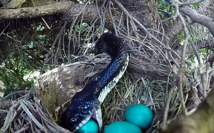 Την επίθεση φιδιού σε φωλιά πουλιού, μόλις η μαμά απομακρύνθηκε από τα αυγά της αναζητώντας τροφή κατέγραψε κάμερα.