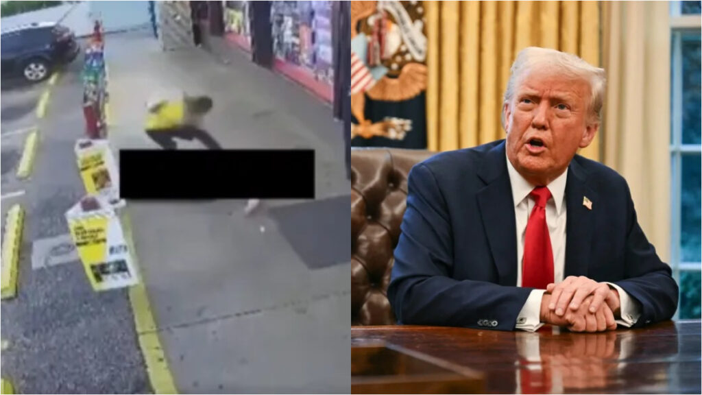 This is surveillance footage of Rolbert Joachin attacking and killing gas station clerk Nilufar Yasmin outside a Fort Myers, FL Chevron store on April 2, 2026, claiming Joachin is a Haitian illegal immigrant caught and released under Biden policies in 2022.
