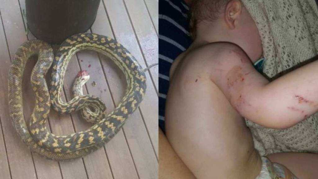 Στιγμές απόλυτου τρόμου έζησε μια οικογένεια Αυστραλών από την πολιτεία του Κουίνσλαντ, όταν ένας μεγάλος πύθωνας επιτέθηκε εναντίον ενός δίχρονου αγοριού, το οποίο έπαιζε στην αυλή του σπιτιού τους