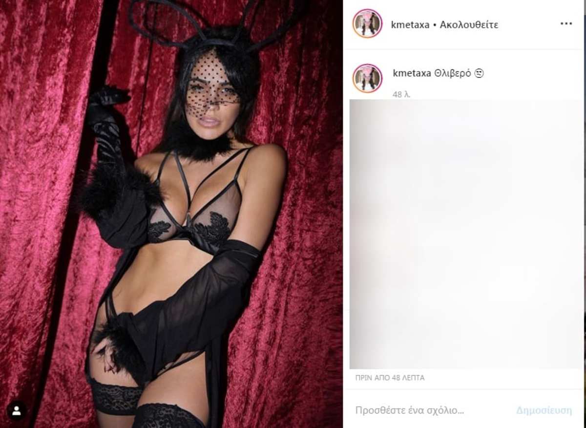 Με σέξι μαύρα εσώρουχα πόζαρε η Κόνι Μεταξά, η οποία ανέβασε τη φωτογραφία στον προσωπικό της λογαριασμό στο Instagram.