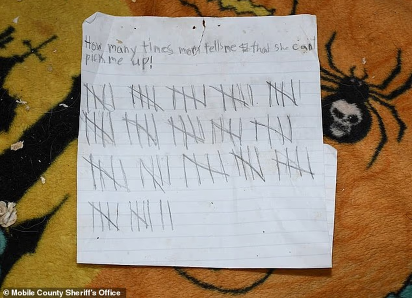 Μια συγκλονιστική υπόθεση εγκατάλειψης ανήλικου κοριτσιού στην Αλαμπάμα έρχεται στο φως, με τους «γονείς» της να έχουν μετακομίσει σε άλλη πολιτεία, αφήνοντάς την μόνη της μέσα σε ένα βρόμικο τροχόσπιτο, παρέα με επτά σκύλους. Το ανατριχιαστικότερο όλων: η μικρή κατέγραψε με μολύβι 87 φορές που η μητέρα της τής είπε ότι δεν μπορούσε να έρθει να την πάρει.