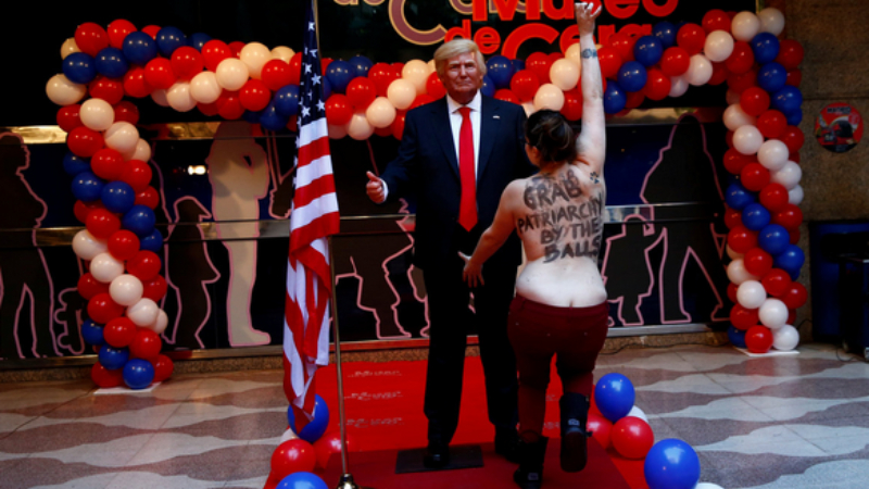 Η ακτιβίστρια της FEMEN, λοιπόν, “πιάστηκε” από αυτήν ακριβώς την ατάκα και πήρε… εκδίκηση από τον Ντόναλντ Τραμπ. Όχι βεβαίως τον ίδιο, αλλά ένα κέρινο ομοίωμά του στο μουσείο της Μαδρίτης.
