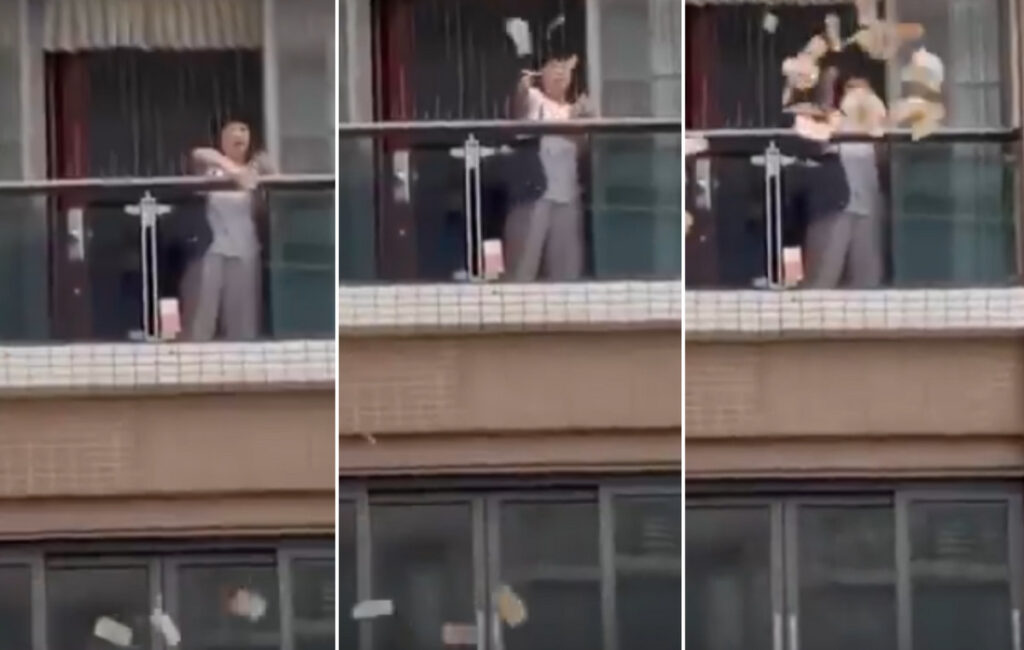 Σκηνές που δύσκολα πιστεύει κανείς εκτυλίχθηκαν στην επαρχία Γκουανγκντόνγκ της Κίνας, όταν μια γυναίκα άρχισε να πετάει δεκάδες χιλιάδες δολάρια από το διαμέρισμά της.
