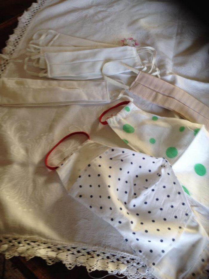 Οι μάσκες που ράβει είναι βαμβακερές με ύφασμα που αποστειρώθηκε και σιδερώθηκε πριν ραφτεί και έχουν θήκη για την τοποθέτηση ειδικής γάζας.