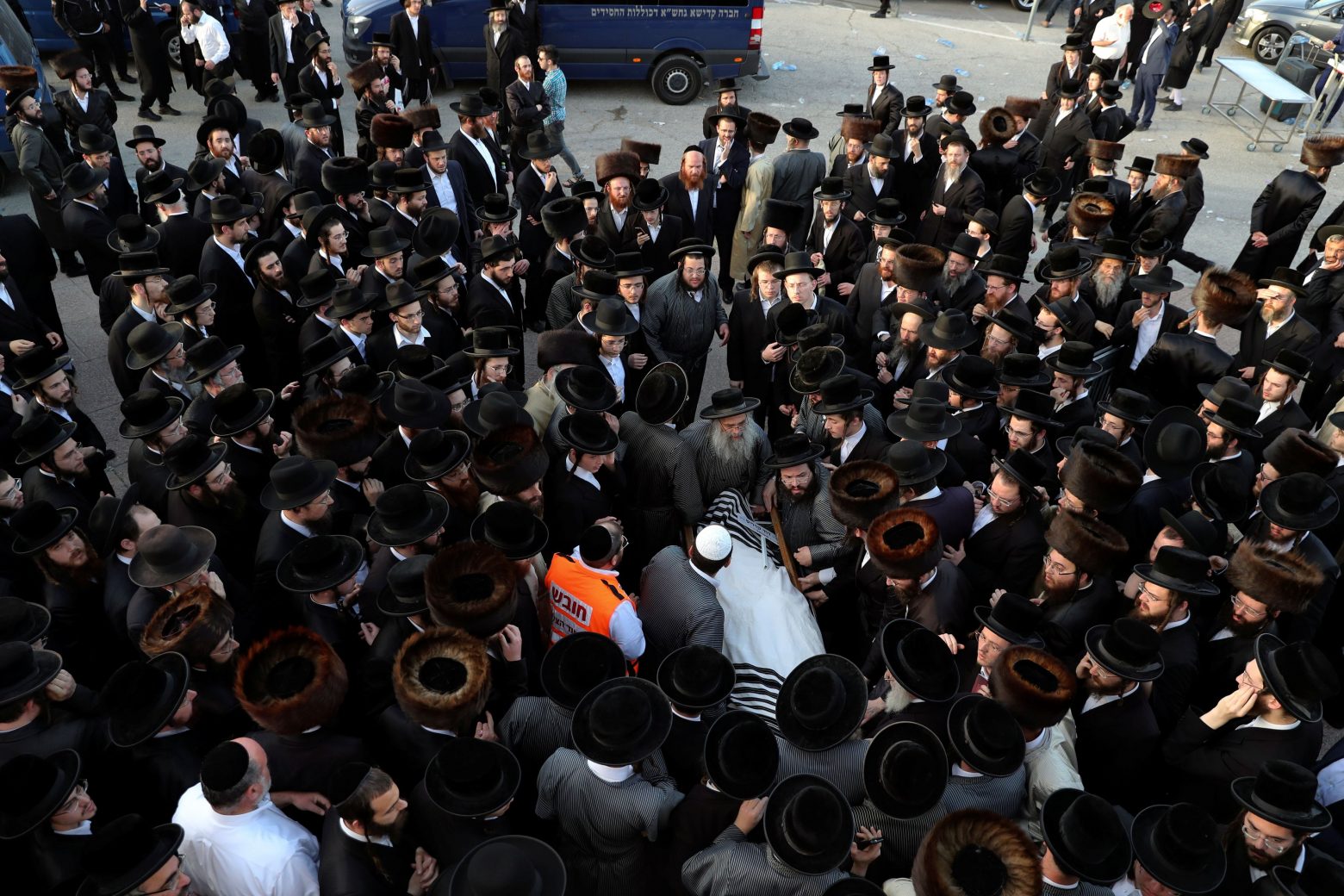 אלפים במסע לוויתו של חנוך סלוד מאשדוד, 52, שנהרג במירון. חסיד גור, הותיר אישה ואם, 6 ילדים ונכדים pic.twitter.com/xhrqb8vH2u