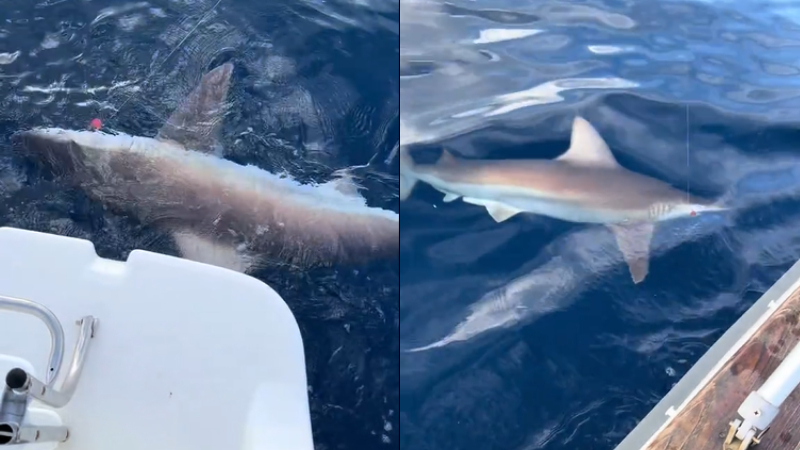 Σε βίντεο που δημοσίευσαν στο TikTok, διακρίνεται καθαρά ο λευκός καρχαρίας να κολυμπά ακριβώς δίπλα στη βάρκα τους, προκαλώντας δέος αλλά και θαυμασμό στους παρευρισκόμενους.