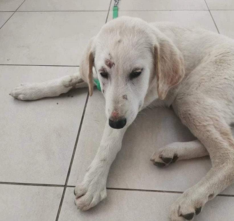 «Το ζωάκι είναι 4,5 μηνών και βιάστηκε επανειλημμένα με βιαιότητα και με αντικείμενα παρά φύση, ενώ λείπει και ένα κομμάτι από τον πρωκτό του. Εξακολουθεί να κάνει χαρούλες, αλλά όποιος το αγγίξει κάτω από τη μέση, πονάει πάρα πολύ και φυσικά φοβάται. Αυτές τις ημέρες νοσηλεύεται στην κλινική, παίρνει βαριά χάπια και παυσίπονα αλλά δεν έχω ιδέα εάν θα καταφέρει ποτέ να ξεπεράσει τη φρίκη που έζησε».