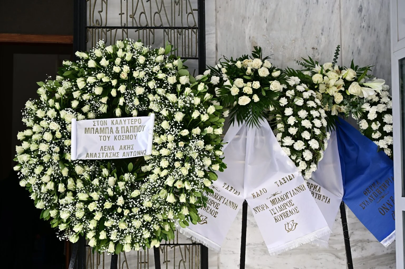 Ανάμεσα στα στεφάνια ξεχώρισε εκείνο της Λένας Παπαληγούρα, το οποίο έστειλε μαζί με τον σύζυγό της και τα παιδιά τους και έγραφε: «Στον καλύτερο μπαμπά και παππού του κόσμου. Λένα, Άκης, Αναστάσης, Αντώνης».