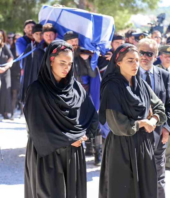 Μαζί τους ήταν και τέσσερις Κρητικοπούλες. Η μία εξ αυτών, είναι η εστεμμένη Μαρία Τσαγκαράκη. Με θλίψη στα μάτια, η νεαρή φιλόλογος που έχει τον τίτλο της «Μις Κρήτη», συνόδευσε τη σορό του Κωνσταντίνου Μητσοτάκη στην Αγία Μαγδαληνή, στη Χαλέπα Χανίων.