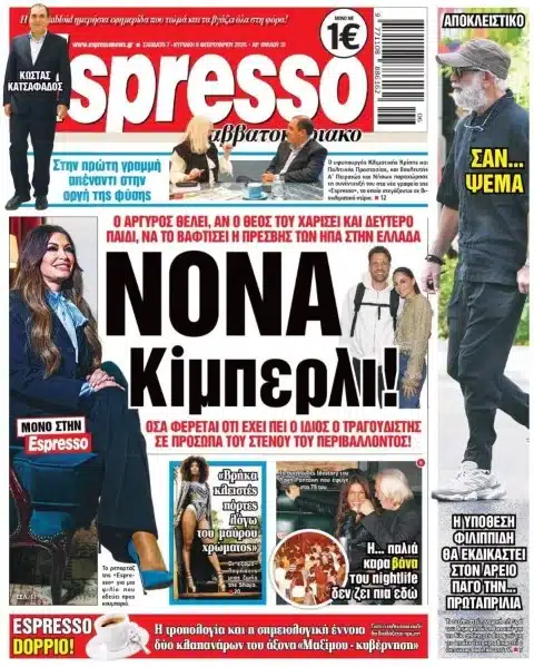 Υπενθυμίζεται ότι το Σάββατο η Espresso κυκλοφόρησε με πρωτοσέλιδο στο οποίο ανέφερε πως ο λαϊκός τραγουδιστής έχει εκμυστηρευτεί σε ανθρώπους του στενού του κύκλου ότι θα ήθελε η Κίμπερλι Γκίλφοϊλ να βαφτίσει το δεύτερο παιδί του, όταν έρθει στον κόσμο.