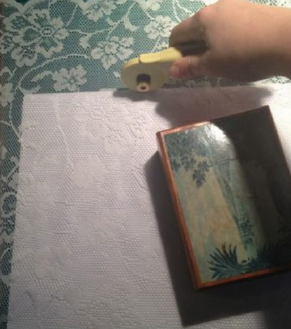 Το καλό με την δαντέλα είναι ότι δεν κάνει φουσκάλες με αέρα και αν κάπου υπάρχει κενό, μπορείτε να το καλύψετε με ένα κομματάκι δαντέλα και κόλλα.