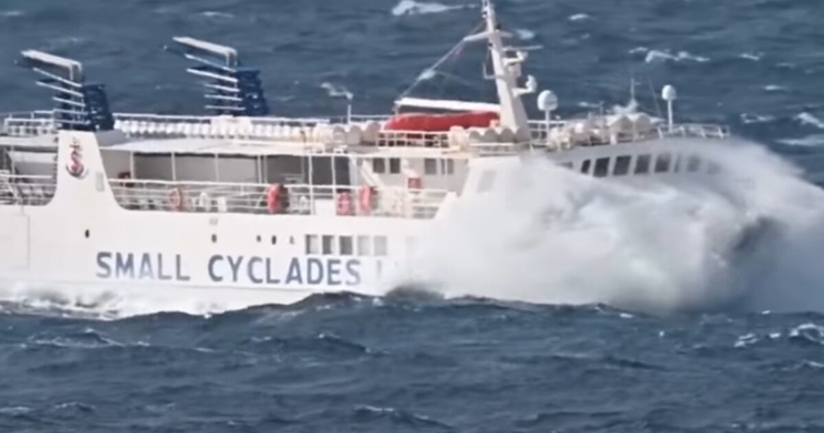 Το μικρό πλοίο που συνδέει καθημερινά τις Κυκλάδες με τον έξω κόσμο αποδεικνύει για άλλη μια φορά πως τίποτα δεν το σταματά, ακόμα και όταν η θάλασσα φουρτουνιάζει.