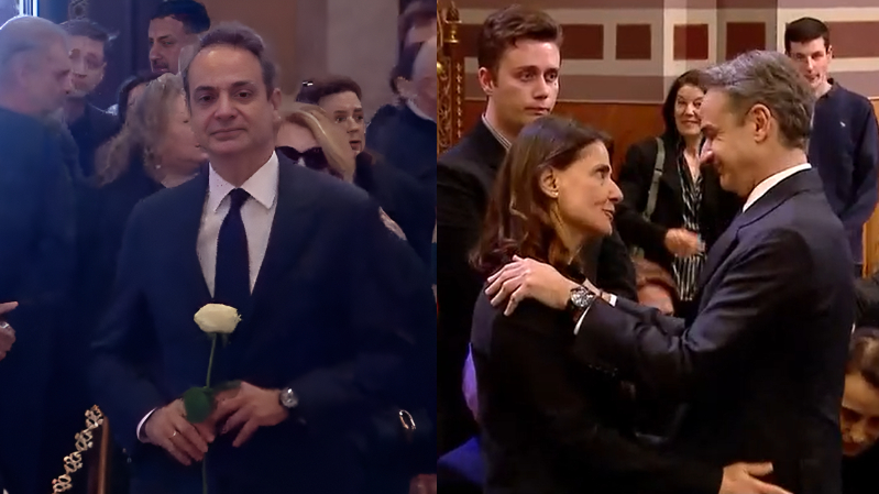 Η παρουσία του σηματοδότησε και την έναρξη της επίσημης τελετής. Ο κ. Μητσοτάκης πέρασε στο εσωτερικό της εκκλησίας, κατευθύνθηκε προς το φέρετρο της Μαρινέλλας και άφησε ένα λευκό τριαντάφυλλο ως ένδειξη σεβασμού.