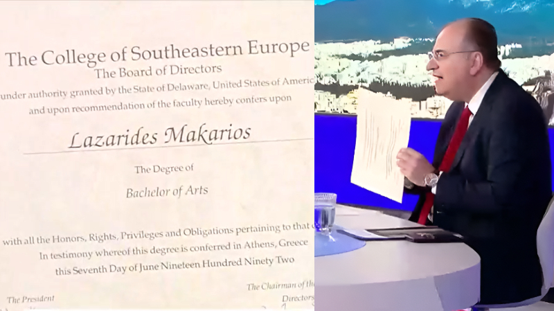 Σε μια προσπάθεια να δώσει τέλος στη συζήτηση, παρουσίασε στον τηλεοπτικό αέρα σχετικό έγγραφο, σύμφωνα με το οποίο του απονεμήθηκε «Bachelor στις Τέχνες» από το «College of the Southern Eastern Europe».