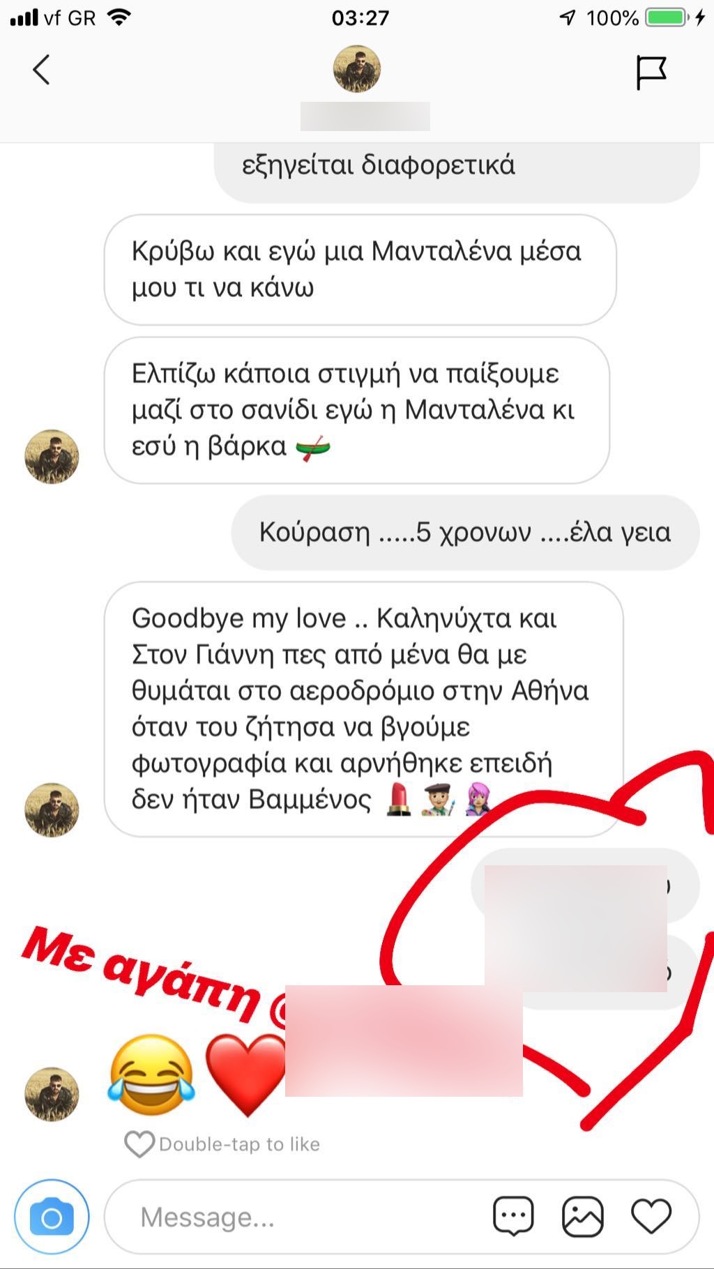 Tη συνομιλία της με έναν… αγενή follower, ο οποίος της έστειλε μηνύμα στο instagram λέγοντας με όχι ευγενικό τρόπο ότι μιμείται την Αλίκη Βουγιουκλάκη στην παράσταση «Η Νεράιδα και το παληκάρι», δημοσίευσε η Μαρία Κορινθίου λέγοντας μάλιστα πως τη συνομιλία τους την δημοσίευσε ο ίδιος, χλευάζοντάς την.