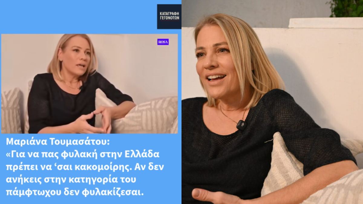 Σε βίντεο που αναρτήθηκε στο TikTok από τον χρήστη katagrafigegonotwn, η Μαριάννα Τουμασάτου δεν κρύβει την αγανάκτησή της για τον τρόπο που απονέμεται η δικαιοσύνη. Η ηθοποιός, με γνωστή κοινωνική ευαισθησία και ευθύτητα στον λόγο της, καταγγέλλει ότι το σύστημα είναι σκληρό μόνο με όσους δεν έχουν καμία δύναμη.