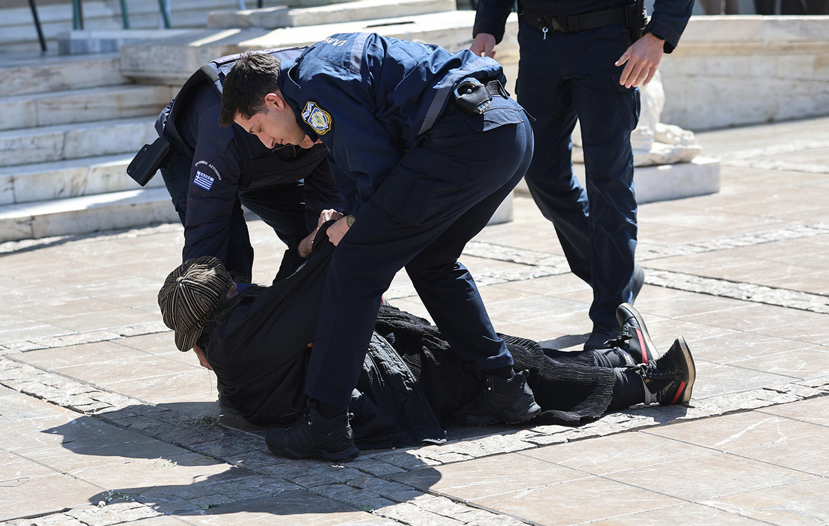 Οι αστυνομικές δυνάμεις που βρίσκονταν εκεί για την ασφάλεια και την ομαλή διεξαγωγή της διαδικασίας επενέβησαν άμεσα. Μέσα σε λίγα δευτερόλεπτα, οι αστυνομικοί την απομάκρυναν από τον χώρο, ώστε να αποκατασταθεί η τάξη και να συνεχιστεί χωρίς εμπόδια η τελετή.