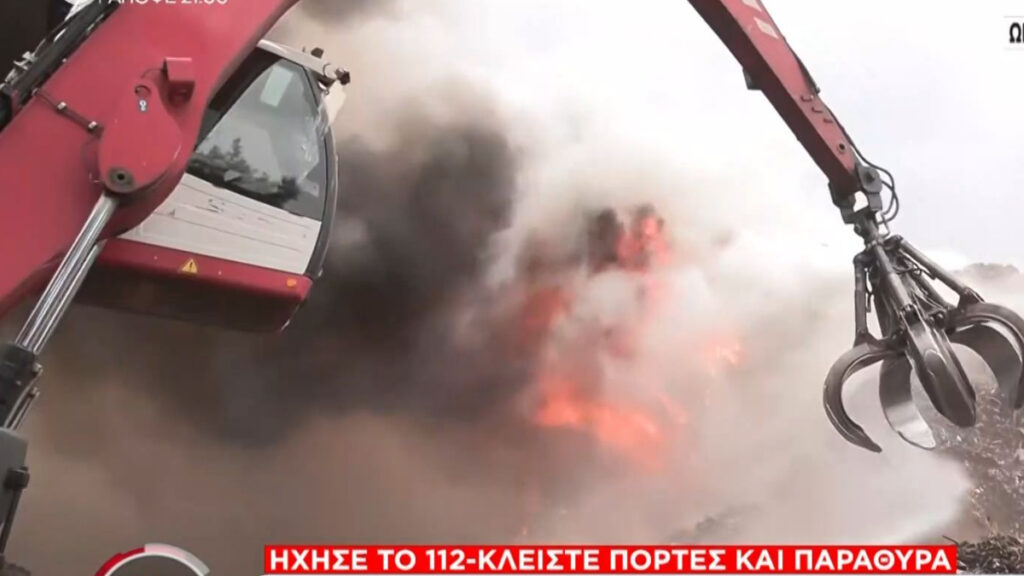 Μεγάλη φωτιά ξέσπασε σε χώρο ανακύκλωσης, με τις αρχές να προειδοποιούν τους κατοίκους για επικίνδυνους καπνούς και να καλούν σε άμεση προστασία.