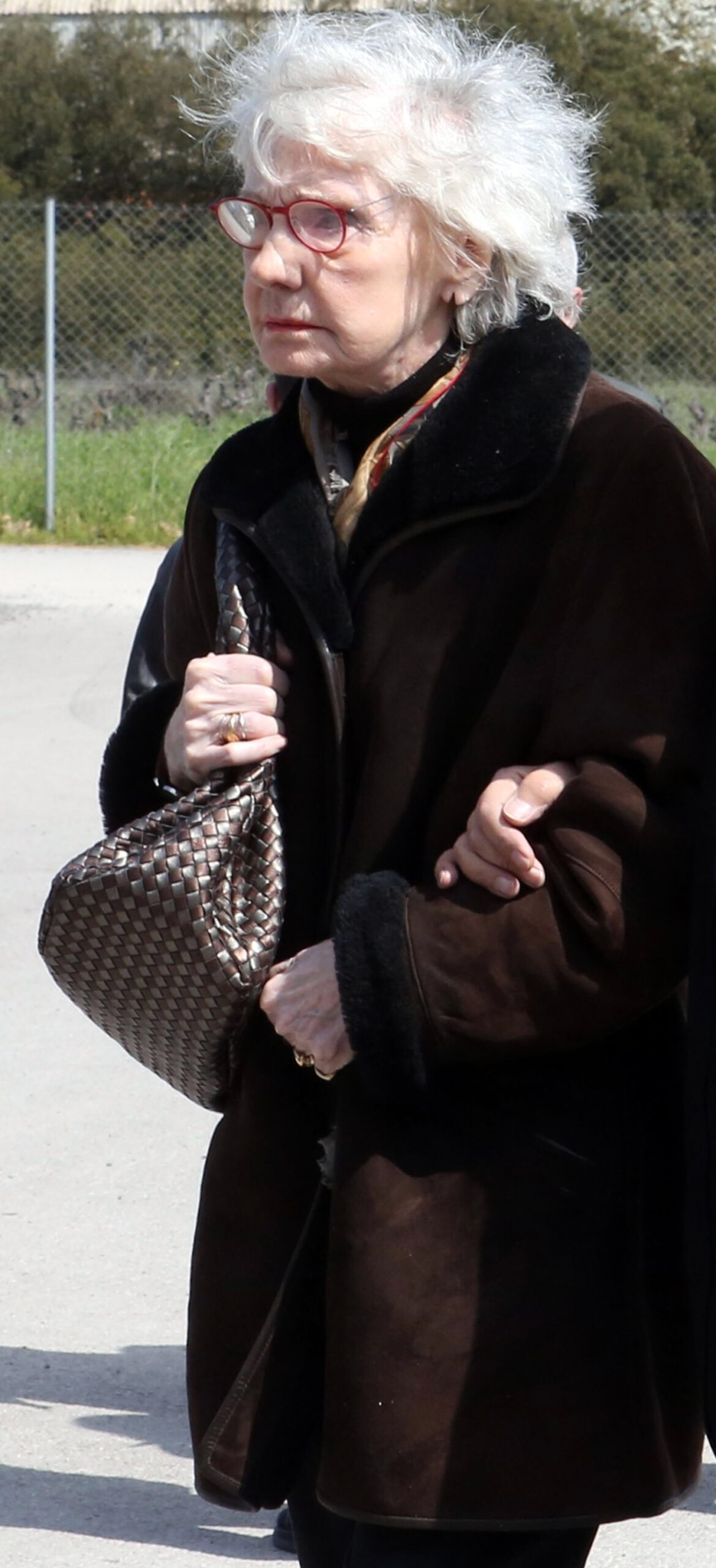 Ο φωτογραφικός φακός την εντόπισε σήμερα, Τετάρτη 11 Μαρτίου, στο αποτεφρωτήριο Ριτσώνας για να αποχαιρετήσει τον Χρήστο Βαλαβανίδη.