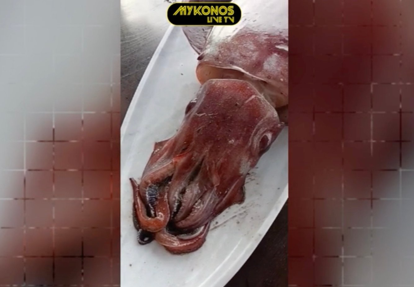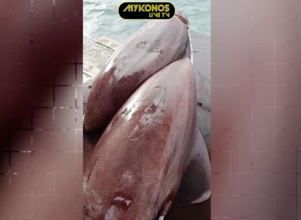Δύο τεράστια καλαμάρια, βάρους 17 κιλών και μήκους ενός μέτρου το καθένα, εντοπίστηκαν από κάτοικο της Μυκόνου, ο οποίος αποφάσισε να βουτήξει και να τα βγάλει από τη θάλασσα με τα χέρια του.