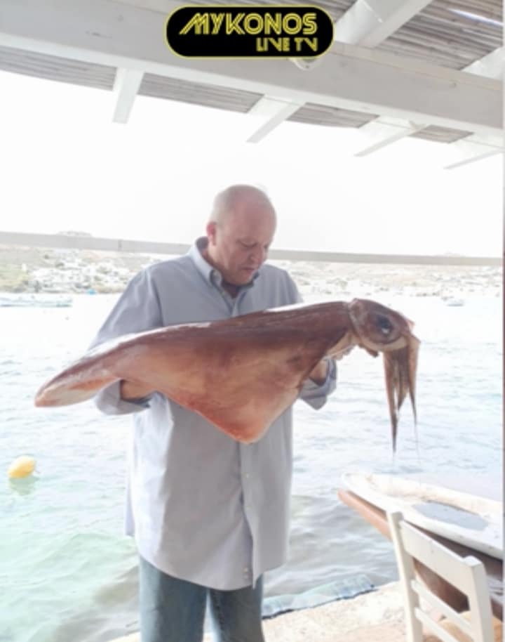 Δεν πίστευε στα μάτια του ο κάτοικος της Μυκόνου όταν εντόπισε δύο γιγαντιαία καλαμάρια να κινούνται στα ρηχά του κόλπου του Ορνού. Χωρίς να διστάσει, βούτηξε στη θάλασσα και κατάφερε να τα πιάσει μόνος του, με τα χέρια.