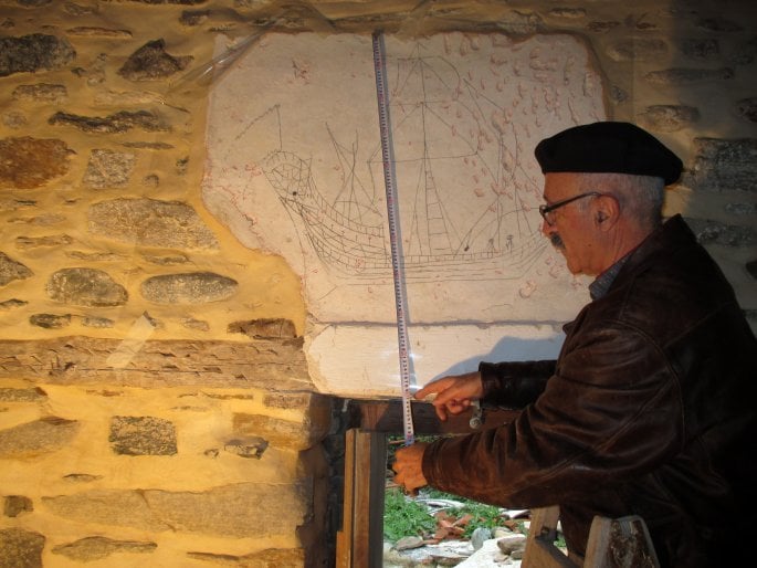 Ο αρχιτέκτονας-αναστηλωτής, Φαίδωνας Χατζηαντωνίου, κατά την αποτύπωση στοιχείου χρονολόγησης παλαιάς κατασκευαστικής φάσης