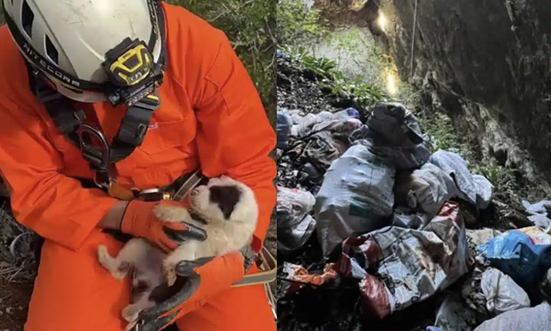Μια απίστευτη αγριότητα καταγράφηκε στο Πήλιο, όπου άγνωστος πέταξε κουτάβια σε γκρεμό 20 μέτρων. Από θαύμα επέζησε μόνο ένα, που σώθηκε επειδή προσγειώθηκε πάνω σε σακούλες σκουπιδιών.