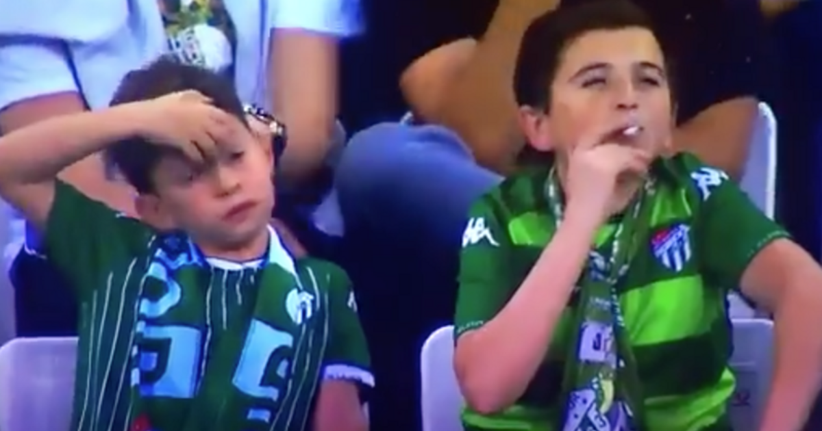 Ήταν το 2019 όταν ένα στιγμιότυπο από τις εξέδρες του γηπέδου έκανε τον γύρο του διαδικτύου. Οι τηλεοπτικές μεταδόσεις αλλά και τα social media, με πρώτο και καλύτερο το Twitter, πήραν φωτιά από την εικόνα δύο φαινομενικά ανήλικων αγοριών στις κερκίδες.