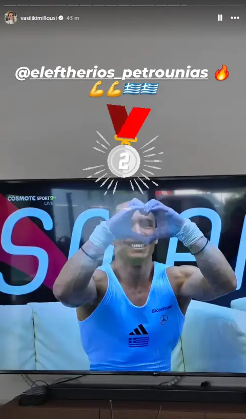 Μέσα από story που δημοσίευσε στο Instagram, εξέφρασε την υπερηφάνειά της για τον Έλληνα πρωταθλητή, ο οποίος ανέβηκε για ακόμη μία φορά στο βάθρο, συνεχίζοντας να γράφει τη δική του σπουδαία πορεία στην ενόργανη γυμναστική.