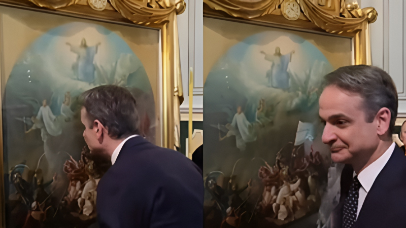 Οι επίσημοι είχαν ήδη πάρει τις θέσεις τους, οι κάμερες είχαν εστιάσει σωστά και το κοινό περίμενε την κορύφωση. Εκείνη τη στιγμή, ο πρωθυπουργός Κυριάκος Μητσοτάκης πλησίασε αργά το έργο, με μια σχεδόν τελετουργική κίνηση. Η ατμόσφαιρα ήταν φορτισμένη. Έσκυψε και φίλησε την εικόνα με ευλάβεια, σαν να επρόκειτο για ιερό εικόνισμα κάποιου Αγίου — ή σαν να το αντιλήφθηκε ως τέτοιο.