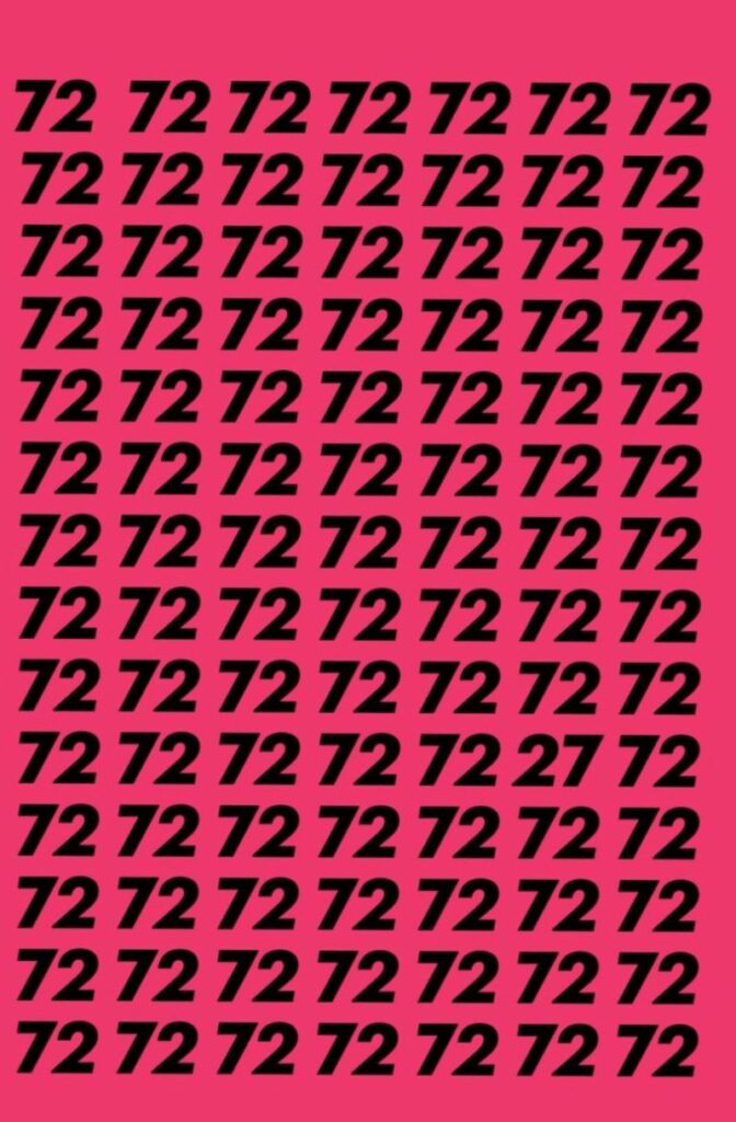 Στην παρακάτω εικόνα θα δεις τον αριθμό 72 επαναλαμβανόμενο σε ροζ φόντο. Η αποστολή σου; Να εντοπίσεις τον διαφορετικό αριθμό 27 που κρύβεται ανάμεσά τους.