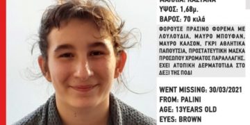 Εξαφανίστηκε στις 30 Μαρτίου από την περιοχή της Παλλήνης, η Μαρία-Φιλοθέη Ν., 13 ετών.