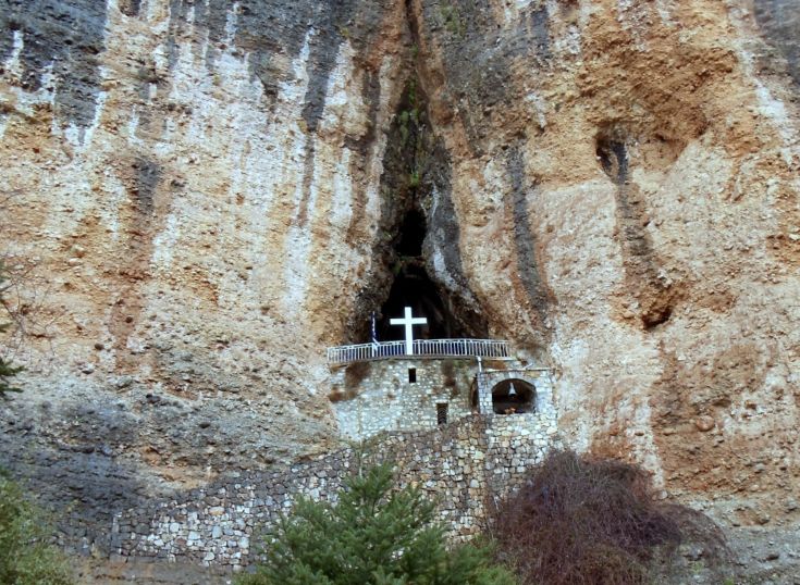 Ανάμεσα στις πολλές ρωγμές που έχουν σχηματιστεί λόγω των απότομων κατολισθήσεων, διαμορφώθηκαν φυσικές σπηλιές. Σε μία από αυτές έχει χτιστεί η Ιερά Μονή της Παναγίας του Βράχου, με τρόπο τόσο αρμονικό με τη φύση που δύσκολα ξεχωρίζει από το πέτρινο τοπίο.