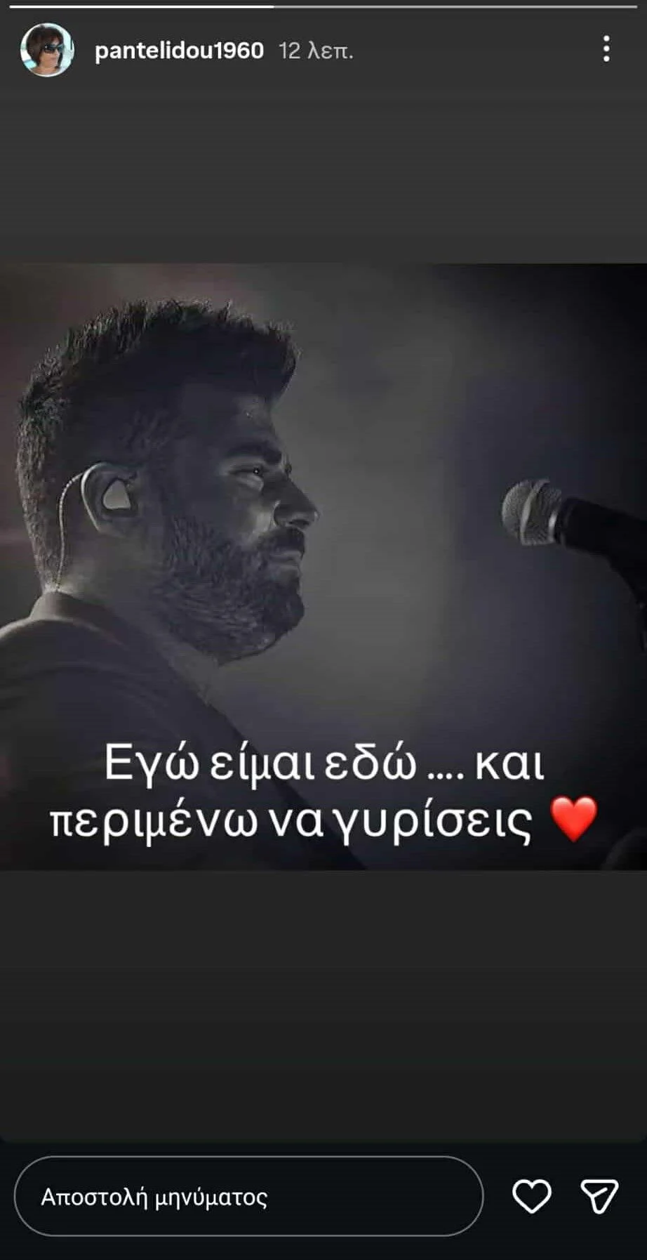 Στον προσωπικό της λογαριασμό στο Instagram δημοσίευσε φωτογραφία του Παντελή Παντελίδη και έγραψε: «Εγώ είμαι εδώ… και περιμένω να γυρίσεις».
